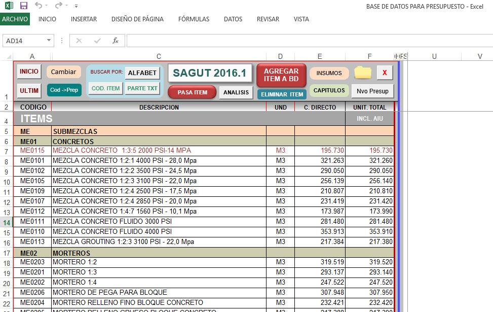 Análisis de precios unitarios modificables.